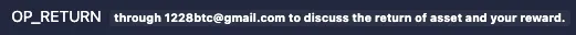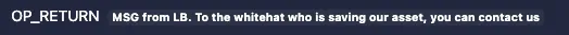 "MSG from LB. To the whitehat who is saving our asset, you can contact us through 1228btc@gmail.com to discuss the return of asset and your reward."